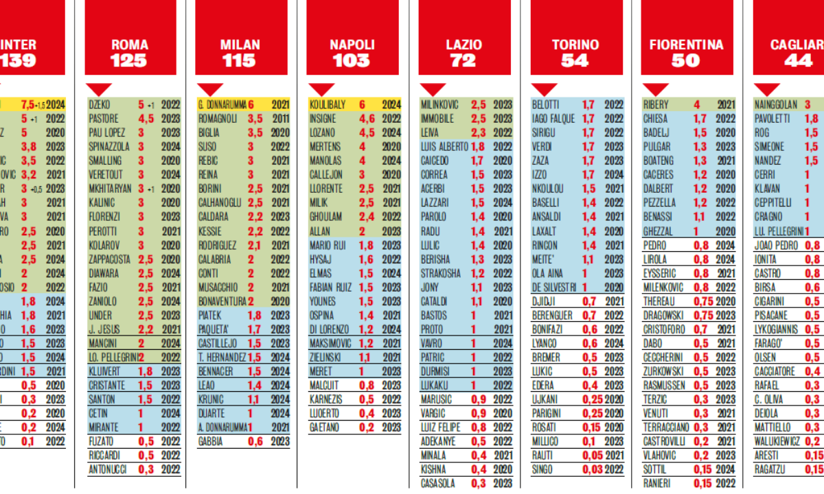 monte ingaggi serie a 2024 – Nelle scorse ore su Tuttomercatoweb.com vi abbiamo fornito il resoconto del monte ingaggi in Serie A. Una classifica a squadre che vede ancora la Juventus davanti all’Inter (seppure ora la . Dalla Fiorentina arrivano 12.6 milioni di euro per Nzola, l’Atalanta può riscattare Holm per 8.3 milioni entro maggio, ma di mezzo c’è la quota del Sonderjyske. Entro la prossima estate almeno un’altr .