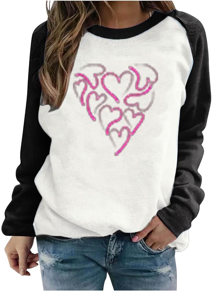 Valentine’s Day Sweatshirt 2024 Women Love Heart Grahic Print